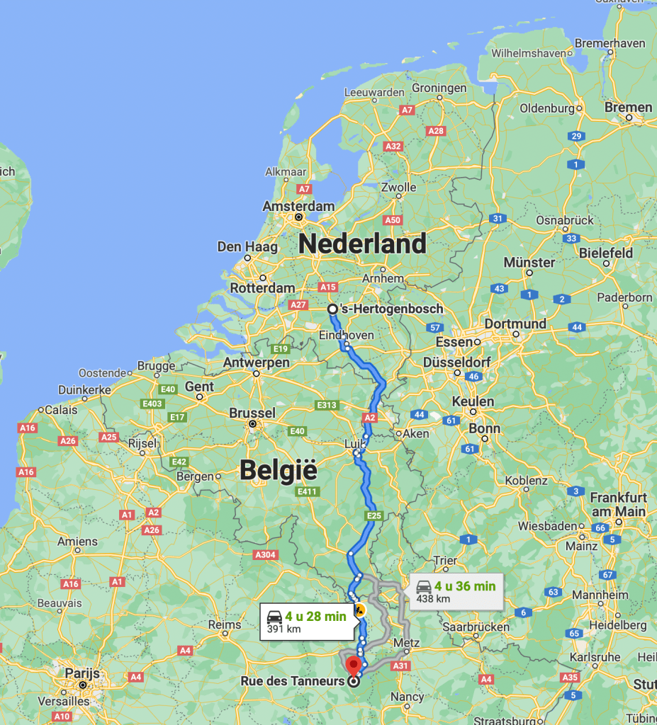 Vijf kwartier door het Franse platteland. Nog een paar minuten vierbaans, maar daarna moet de voet van het gaspedaal, de meter op 80 en 50 in de dorpjes. Hier begint het échte vakantiegevoel te borrelen. Relaxed rijden door de glooiende landschap met heerlijke vergezichten en dorpjes. Het is ergens bij Spincourt waar de lucht van brandende houtkachels opeens m’n neus instroomt. Frankrijk. Na twintig jaar ruikt dat naar thuis. De weg is vanaf nu tweebaans, meestal redelijk rustig. Eerst richting Verdun en dan richting de A4 Metz en Parijs. Om in het zicht van het toegangspoortje van de péage op de rotonde links af te slaan en via nog smallere weggetjes naar Saint Mihiel te rijden. Een route die we pas ontdekt hebben toen mijn kleine fiat 500 voor het eerst de reis maakte en ik de navigatie volgde. Een fijne ontdekking; lekker kronkelig, door kleine dorpjes en alsnog het snelst. Soms, als ik niet helemaal vertrouw op mijn ogen of reactievermogen, pak ik liever de A4 richting Parijs en ga er dan de volgende afrit bij Verdun weer af. Kost 1,10 péage en het risico op een aanrijding met een everzwijn, hert, das of vos is beduidend kleiner.