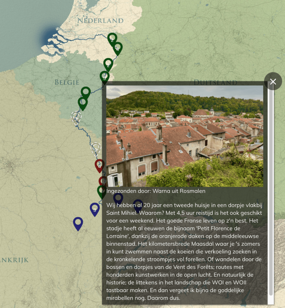 En heb jij ook een mooie herinnering aan deze rivier in Frankrijk, België of Nederland? Daar is alle ruimte voor op de interactieve kaart van de Maas.